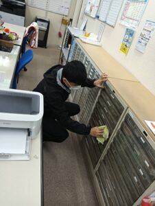 自身のデスクから事務所全体を拭き掃除を中心に行いました。